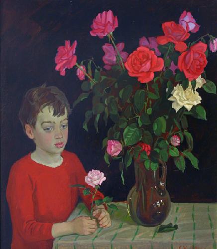 男孩与玫瑰 1991年创作 规格:70X60 木板蛋彩