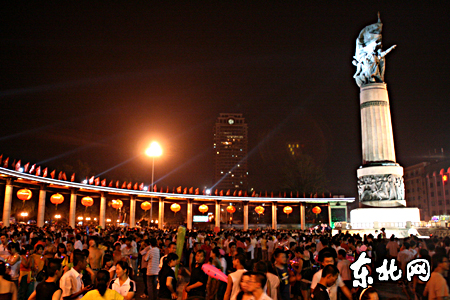 哈尔滨防洪纪念塔成为一片欢乐的海洋