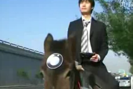 男子嫌车贵油贵 骑BMW牌骡子上班
