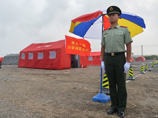 7月19日,黑龙江总队按照演练导调组命令,已经投入灭火救援战斗,目前演练正在紧张有序进行当中。