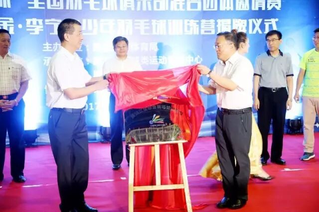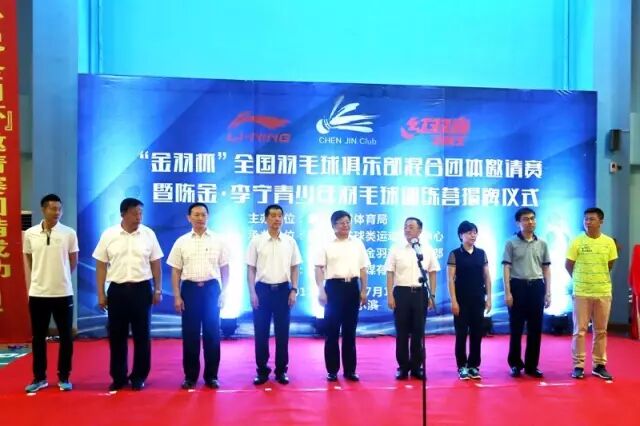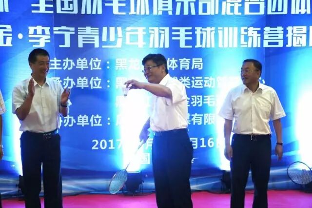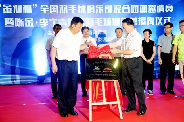 开幕式现场,进行了还举行了陈金—李宁青少年羽毛球训练营和哈尔滨陈金国际体育俱乐部揭牌揭牌仪式。
